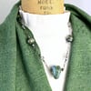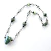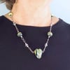 Sea Green Glass Heart Necklace, Sterling Silver, lampworked glass heart and beads, green, teal, and gold swirls