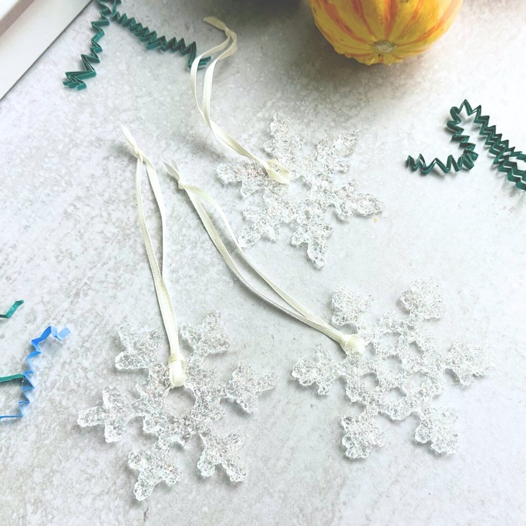 Glass Snowflake Ornaments, Set of 3 in Clear Fused Glass with Icey Look