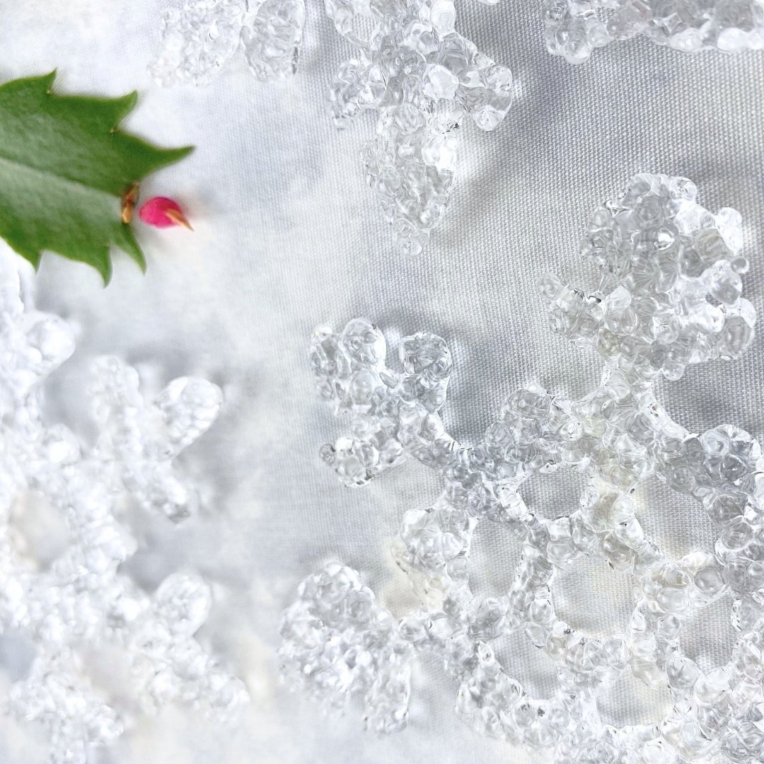 Up your decorating or gifting game with beautiful fused glass snowflakes. Transparent with the look of fresh ice and a subtle druzy texture. Not just for Christmas and winter holidays. An ideal gift for your holiday hostess, favorite teacher, grandma, or anyone special. These snowflakes give an icy touch while also adding pizzazz and freshness to your decor. They will reflect the lights on a tree, from your candles, or sun through a window, turning your room into a winter wonderland. I confess to having several of them hanging around my house all year long. Hang them from your tree, cactus, in a window, from the chandelier, from track lighting rails, anywhere you can think of!