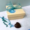 Your earrings will be packaged in a cello bag (compostable and bio-degradable) and then in a recyclable kraft gift box, with pretty branding stickers and tied with a sparkly teal ribbon. Suitable for gifting.