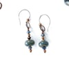 Green Glass Earrings, blue, green, teal and copper dangles for pierced ears